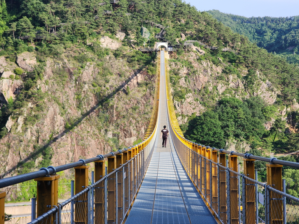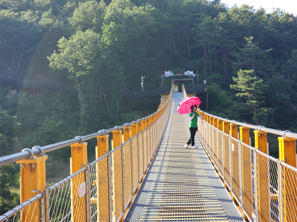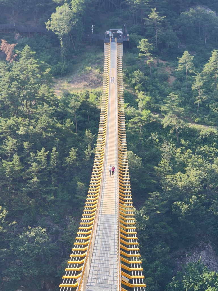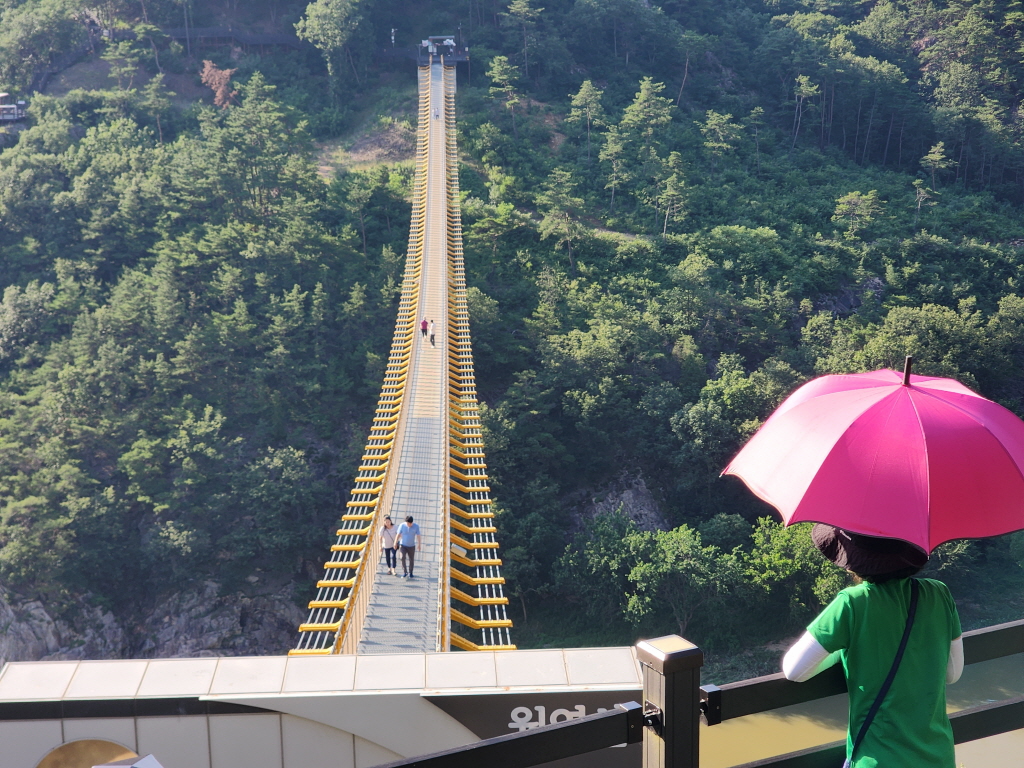 높이 45m, 길이 275m, 폭 1.5m 무주탑 현수교로 1,500명이 동시에 이용할 수 있도록 설계되었다네요
