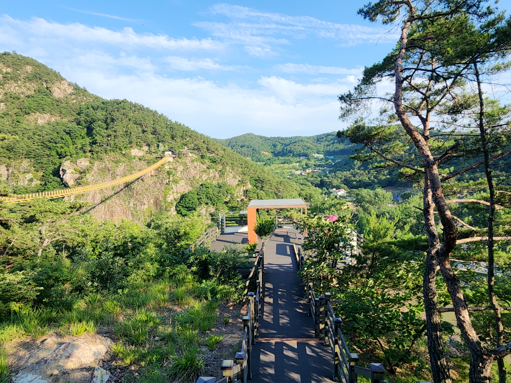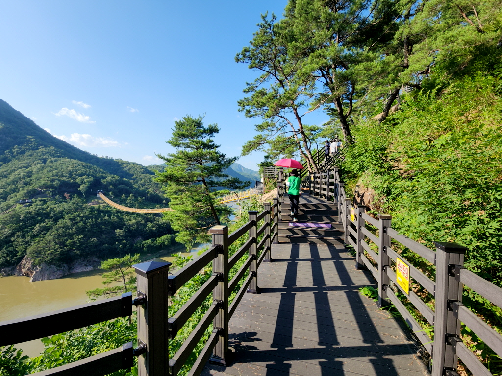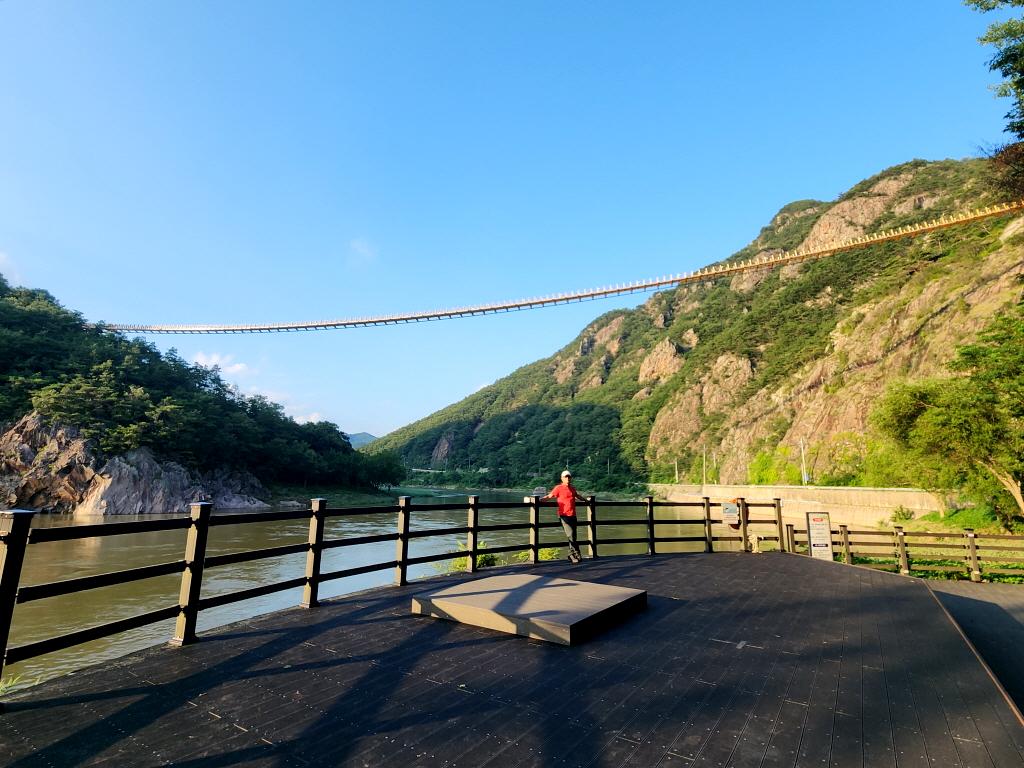 출렁다리 아래로는 금강 상류 물줄기가 흘러 산과 강의 조화된 아름다운 수변경관을 한눈에 조망할 수 있고,