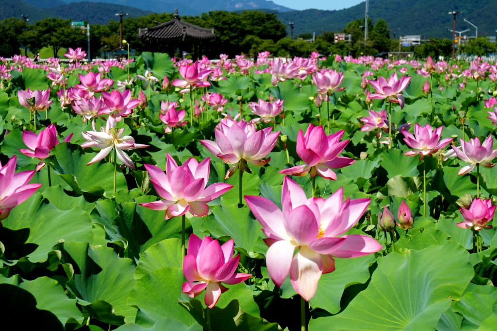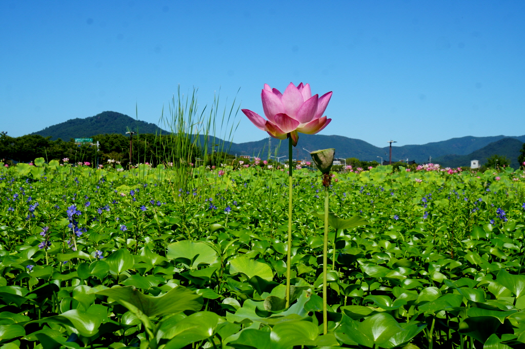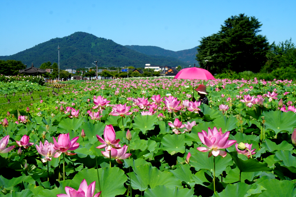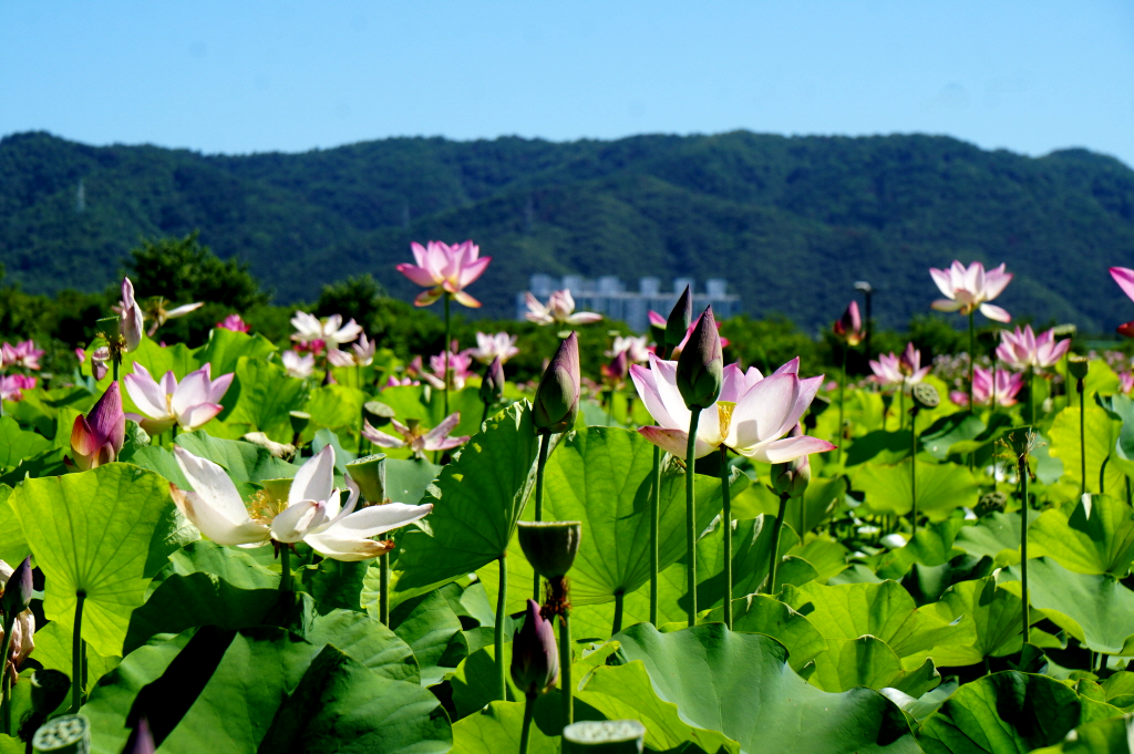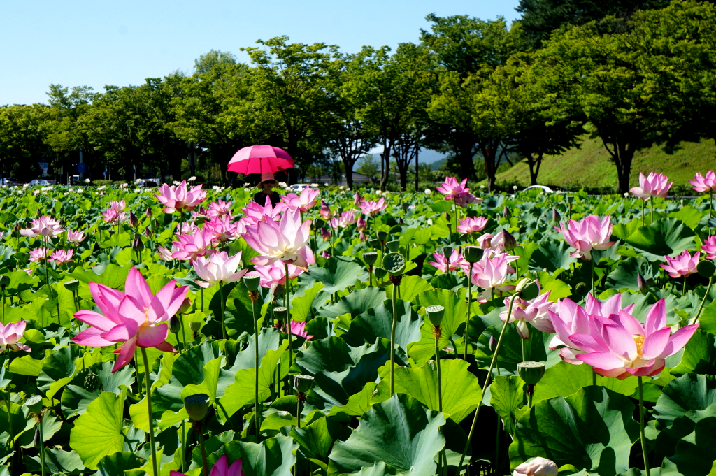 연꽃단지는 현재 공사중으로 출입이 통제되어 있는데 연꽃 개화로 7. 16 ~ 8. 24까지 임시로 개방을 하였네요