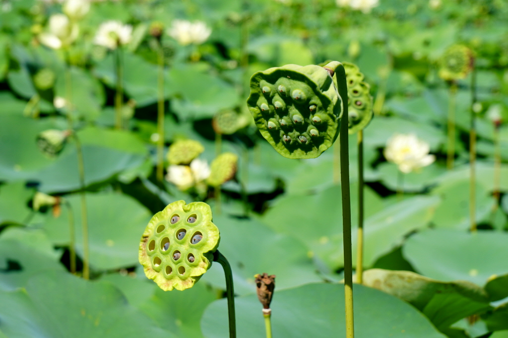 연꽃은 절정의 시기를 지났지만 폭염속에서도 여전히 이쁘게 피어있었고