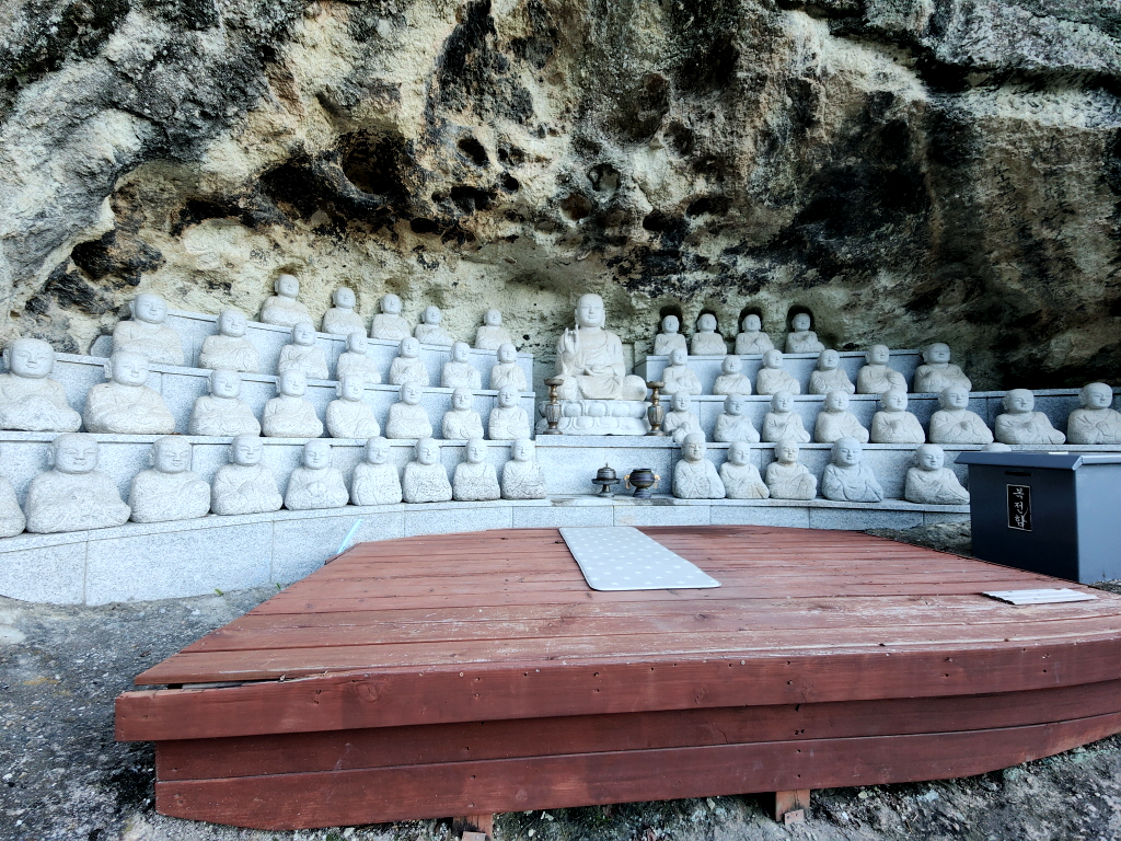 법당굴은 입구 지붕은 기와가 얹어져 있지만 법당 내부는 천장과 벽이 모두 돌로 된 석굴입니다.