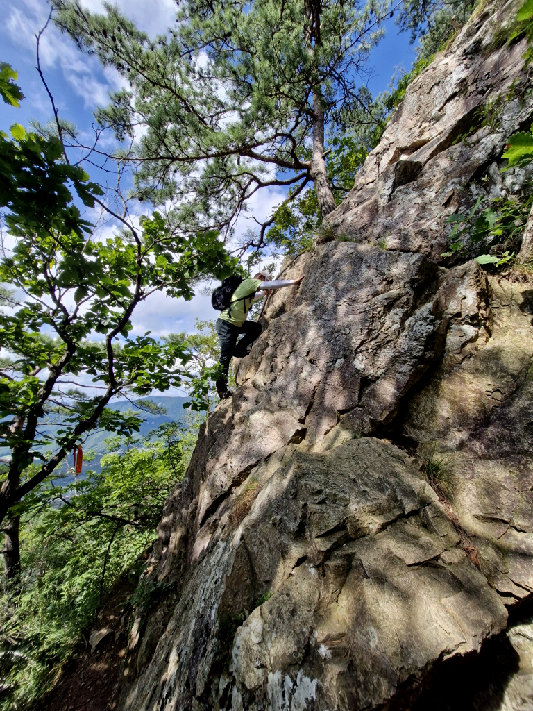 수시로 암벽을 오르고 내려야 되기 때문에 산행거리에 비해 산행시간이 많이 소요되는 구간으로