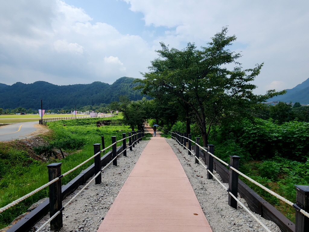 하늘다리에서 비둘기낭 주차장을 거쳐서 Y자형 출렁다리로 갑니다.(거리는 약 1km여)