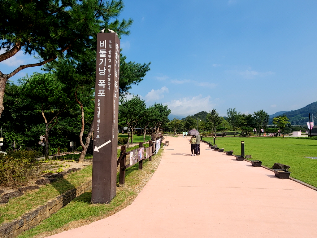 경기 포천시 양북면 대회산리 비둘기낭 주차장에 주차하고 비둘기낭 폭포로 갑니다. (입장료, 주차료 무료)