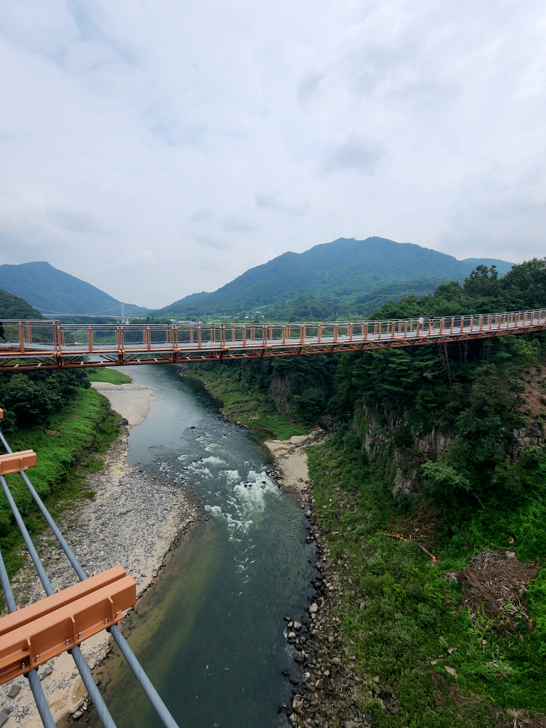 출렁다리에서 본 하늘다리 방향 한탄강 전경