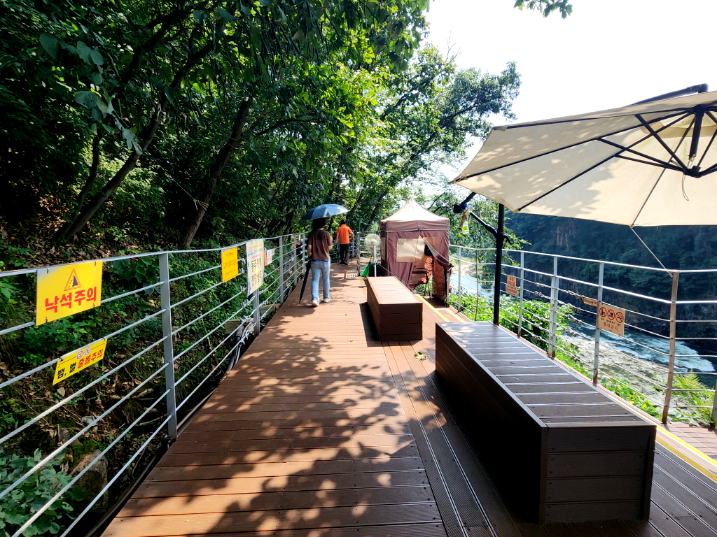 그 위로 떨어지는 폭포가 어우러져 보는이의 시선을 사로잡는다. 잔도 길이는 3.6km고 1시간30분 가량 소요된다.