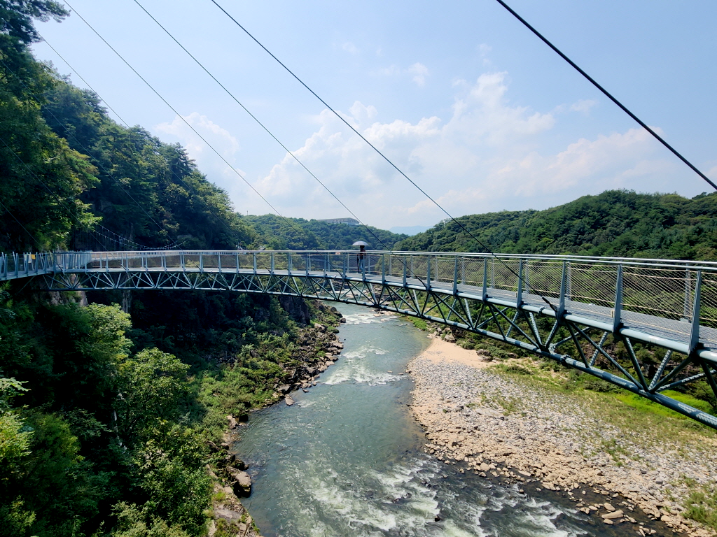 두루미를 형상화란 링 형태의 출렁다립니다. 한탄강으로 단절된 철원과 포천의 주상절리길을 연결해주는 역활을 합니다.