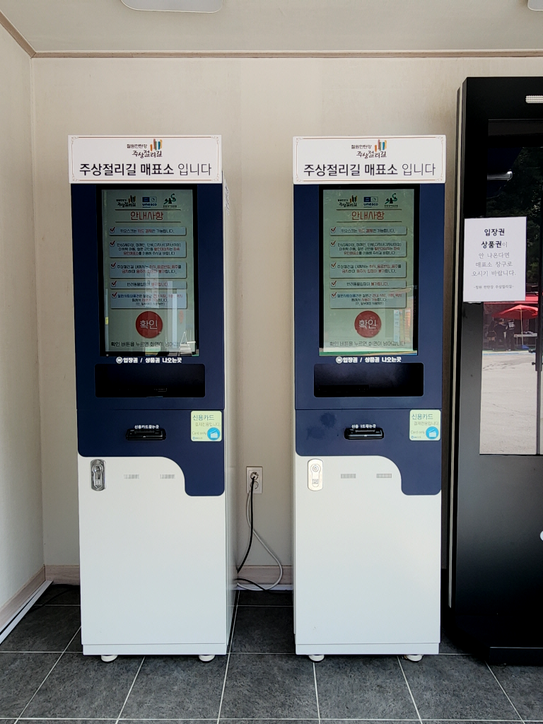 무인 매표소에서 입장권을 구입해야 됩니다.