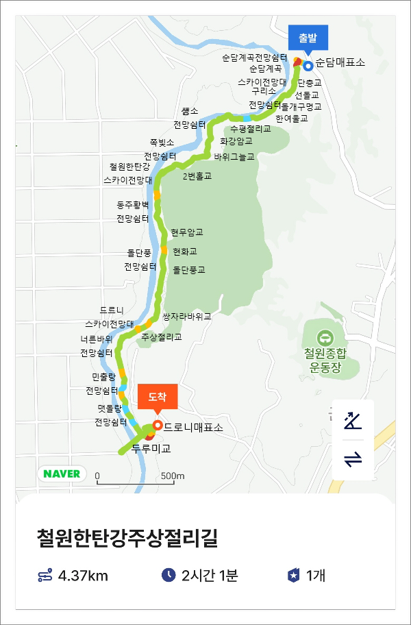 한여울교(순담 0.7km, 드르니 2.9km)