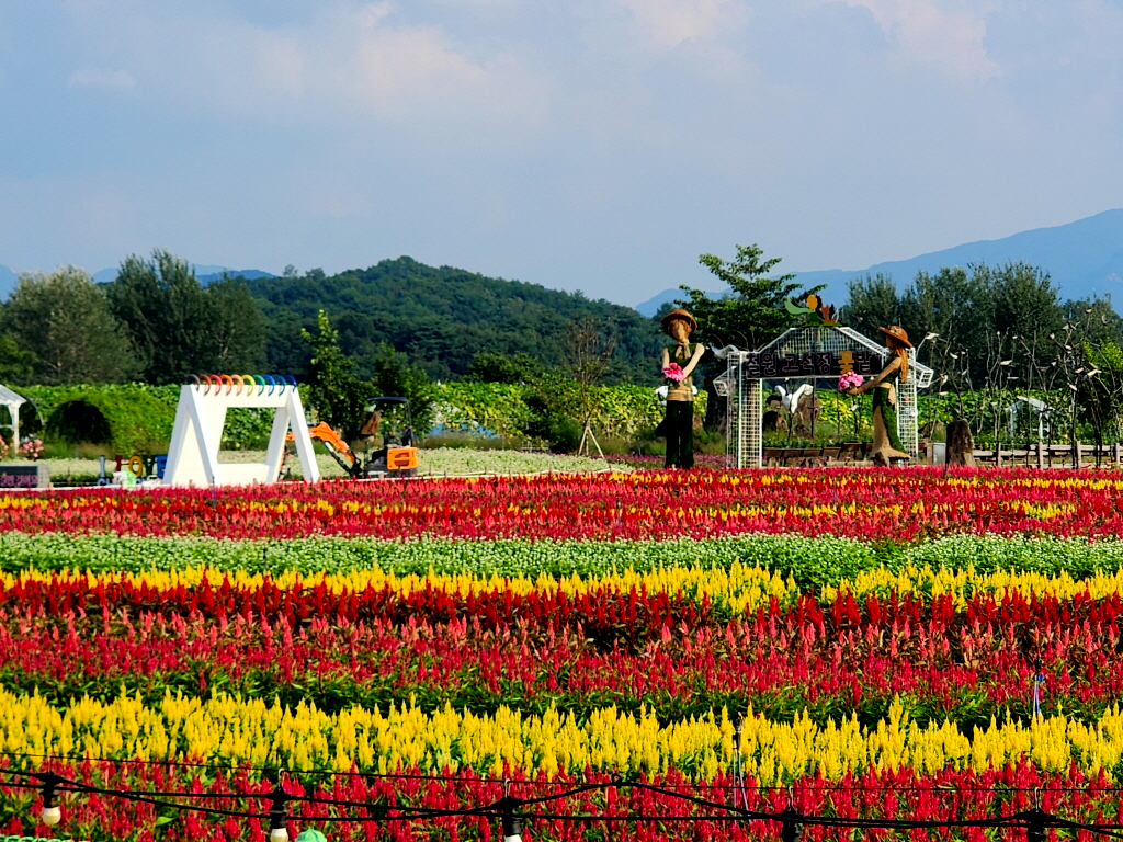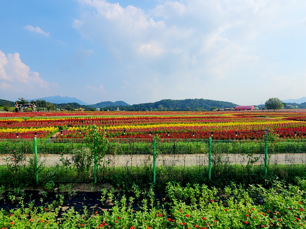 고석정 꽃밭에서 만날수 있는 꽃은 백일홍, 맨드라미, 코스모스, 국화, 핑크뮬리, 댑싸리 등 다양한 꽃을 만날수 있답니다.