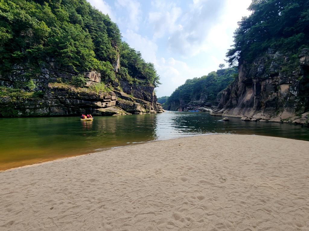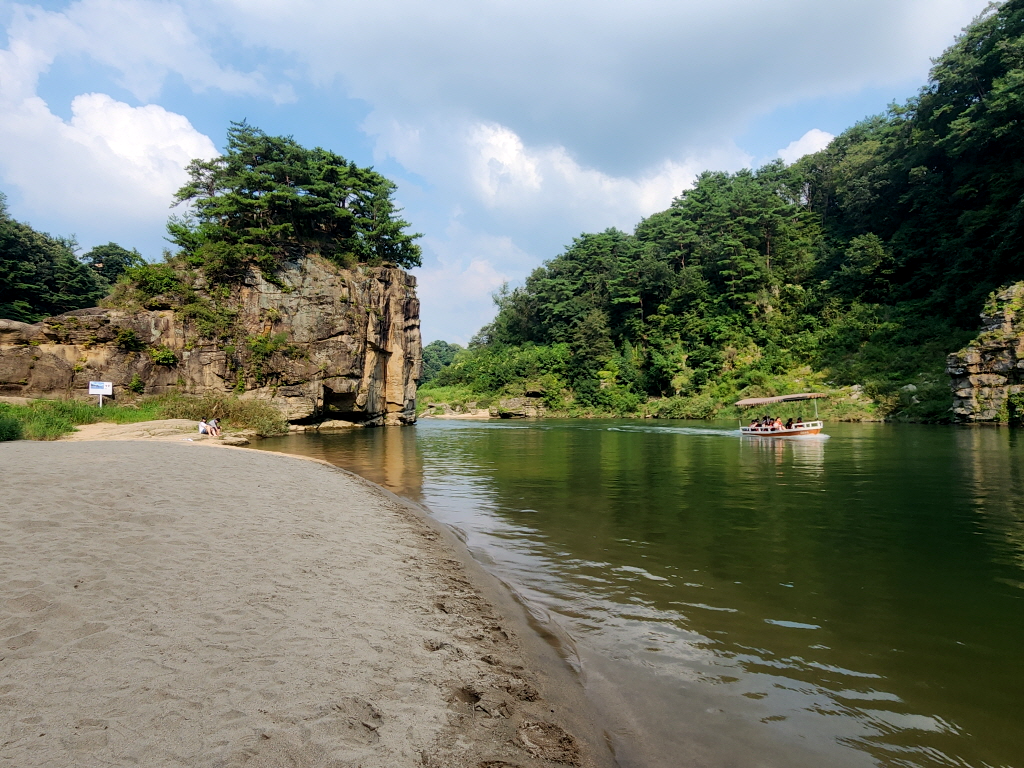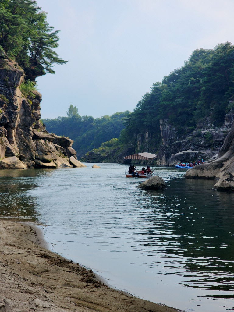 알고보니 고석정 위 승일교에서 레프팅 보트가 출발해 고석정을 지나 순담계곡에서 마무리를 하네요