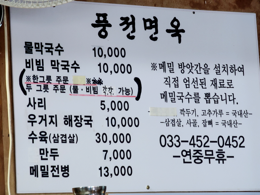 오후 3시경 철원군 갈말읍 군탄리 풍전막국수(풍전면옥)에 들어가 늦은 점심을 먹습니다.