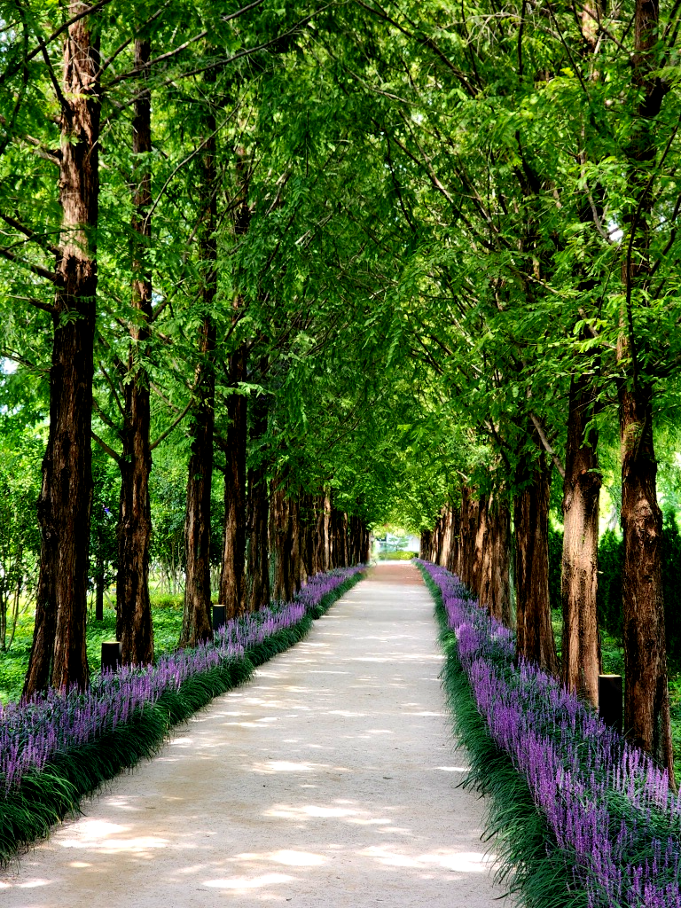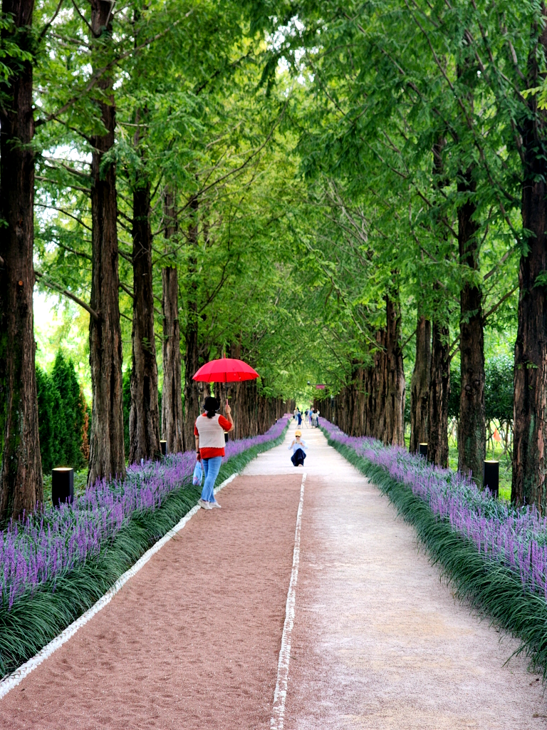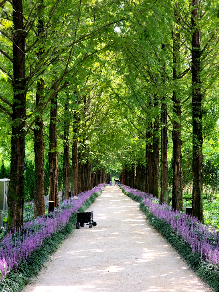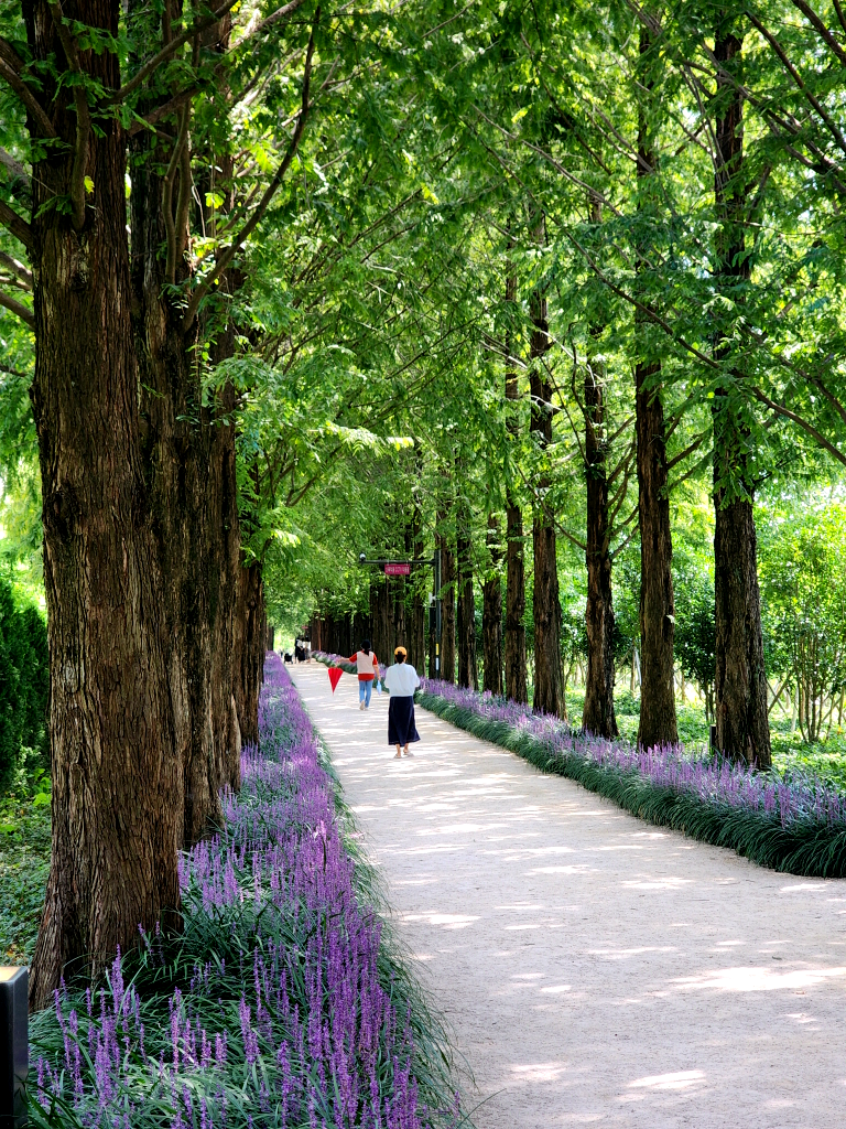 이곳에 이렇게 멋진 메타쉐콰이어 숲길이 있고 그 아래 맥문동 꽃이 피는줄은 몰랐네요