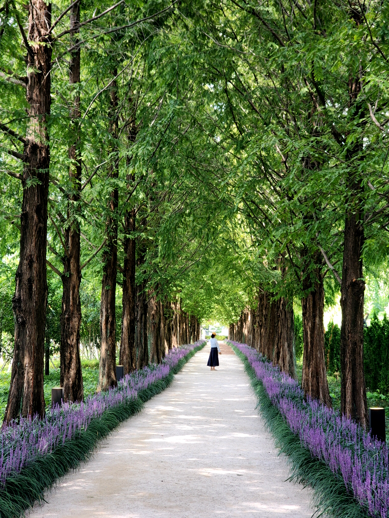 길 양쪽으로 쭉쭉빵빵한 메타쉐콰이어 나무가 쭉 늘어서 있고