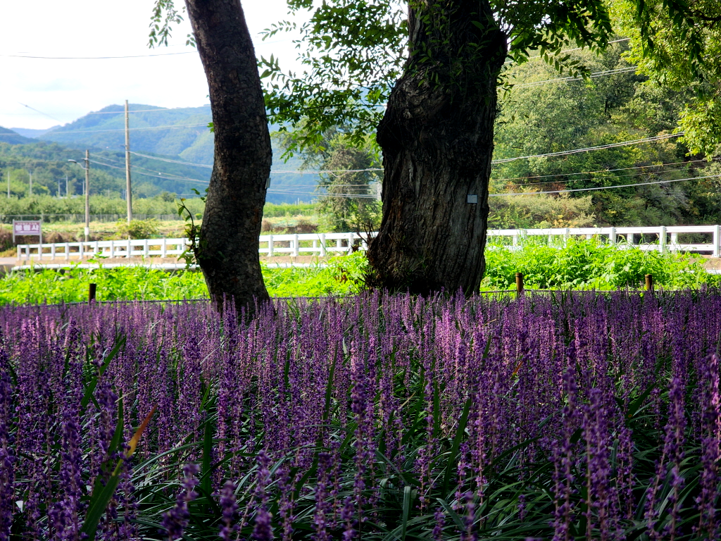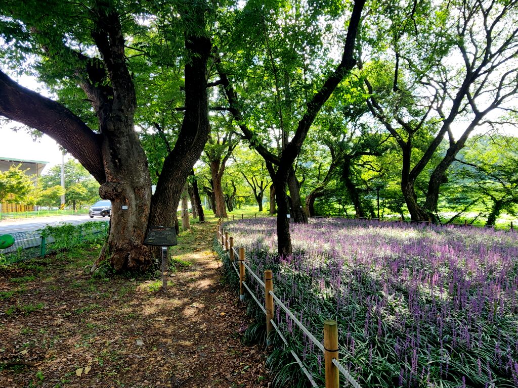 영천시 화북면 자천리로 30분 정도 차량 이동해 오리장림(五里長林)의 맥문동을 구경합니다.