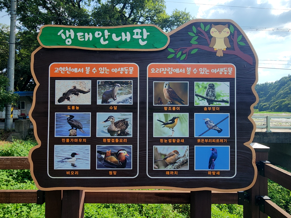 고현천과 오리장림에서 볼 수 있는 야생동물 안내판으로