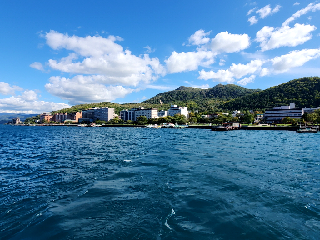 호수 건너편에는 온천 호텔촌이 형성되어 있고 둘째날 숙소 도야 썬팔레스 호텔도 그쪽에 있네요