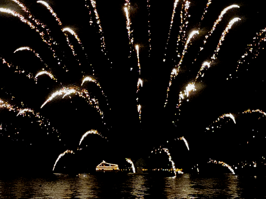 20시45분에서 21시05분까지 20분간 불꽃놀이를 하고 객실 창문을 통해서도 보인다는데 우린 구경하러 내려가기로 합니다.