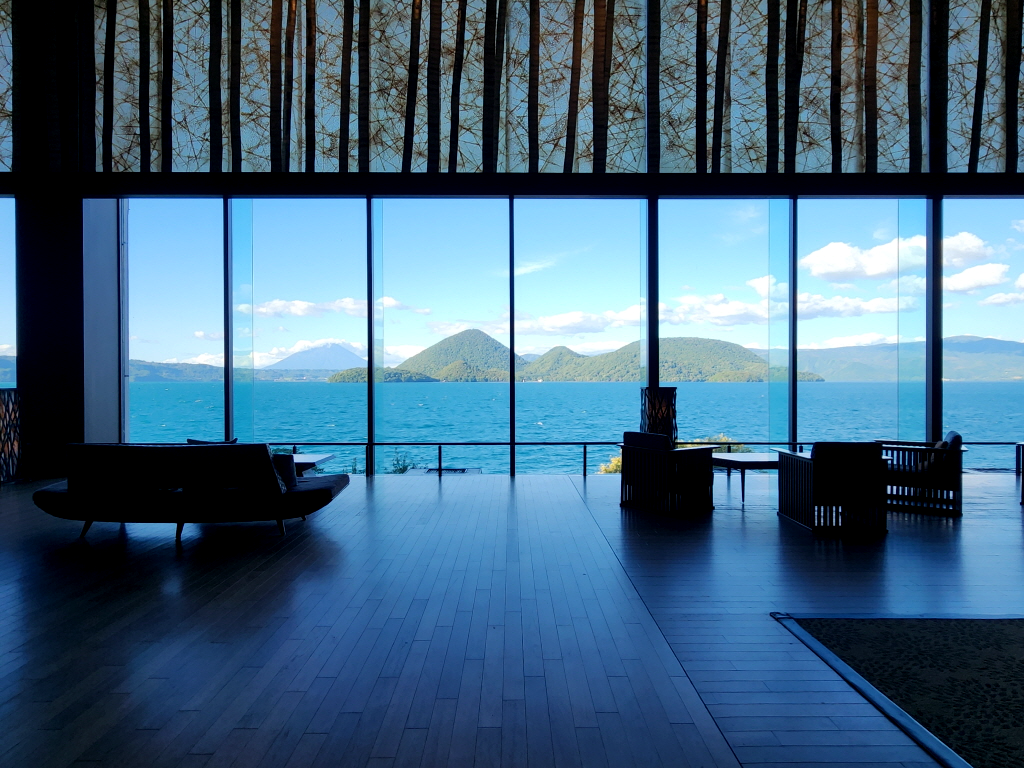호텔 온천욕장 뷰가 정말 끝내주더군요 온천욕장 앞이 트여있고 도야호가 멋지게 조망되기 때문에 탕속에 앉아있으면