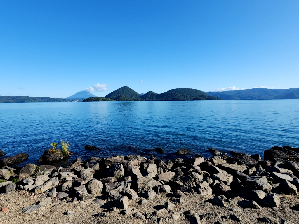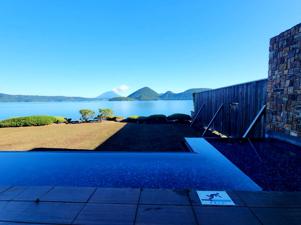 탕속에 앉아있으면 도야호(洞爺湖)가 수평으로 보이기 때문에 뷰는 정말 끝내줍니다.