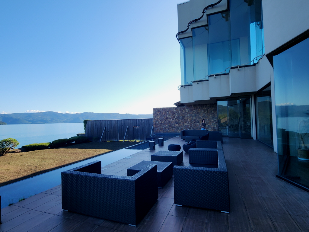 호수가에서 돌아본 도야 썬팔레스 호텔