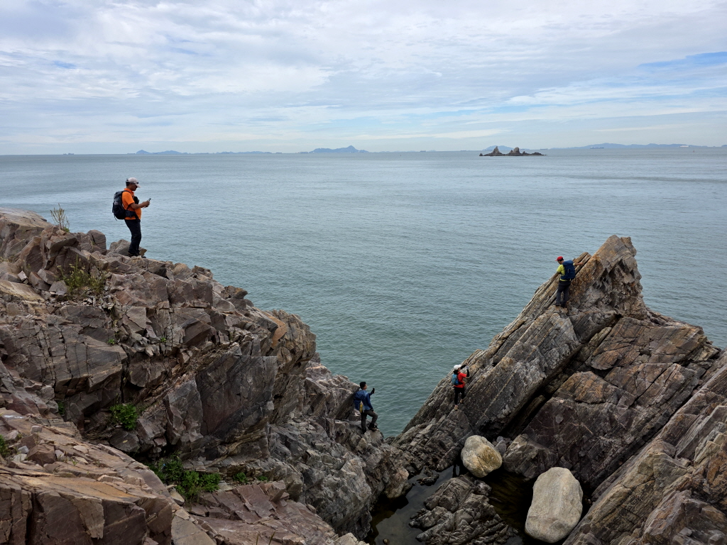 아무튼 해안 해벽따라 코끼리바위를 지나 굴금까지 진행한 뒤 황금산으로 올라갈 예정입니다.
