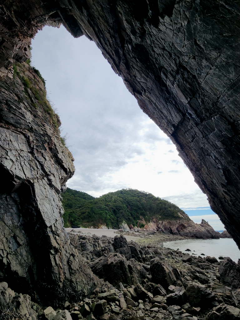 굴금에서 해벽따라 더 이상 진행할수가 없네요