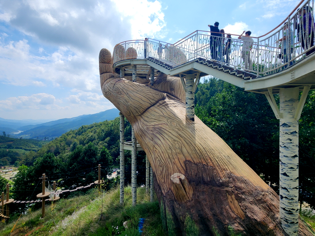 그 중 대표적인 볼거리로 트리탑(총길이 133m)의 핸드 전망대가 인기를 끌고 있다네요