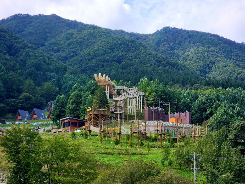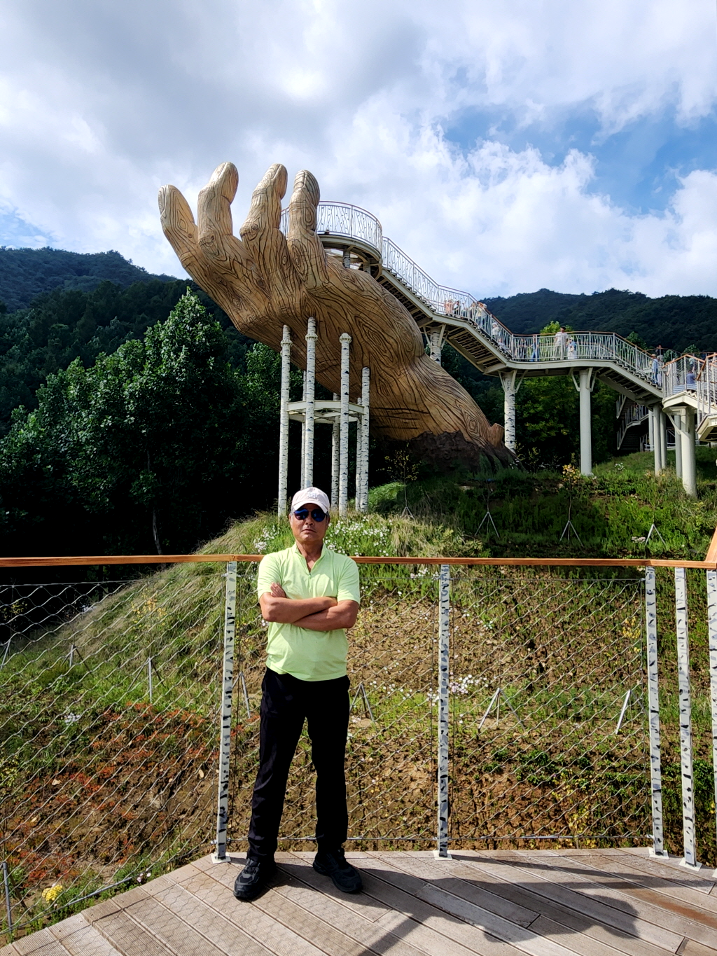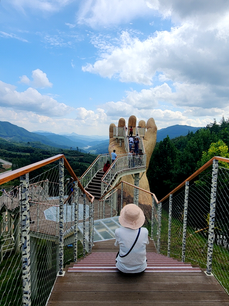거창 산림레포츠파크로 이동하여 요즘 핫 한 핸드 전망대를 구경합니다.