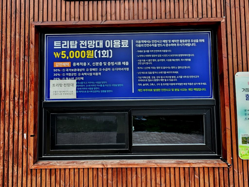 트리탑 전망대(핸드 전망대) 이용 요금이 5,000원이라 쓰여있는데 성인 2,000원을 받네요