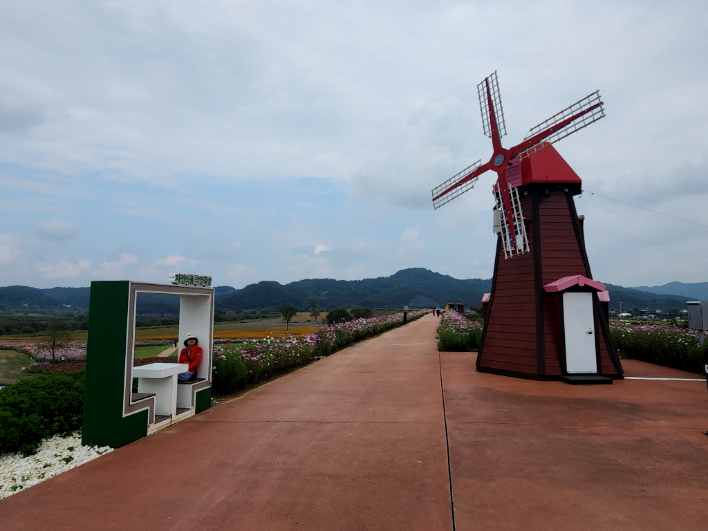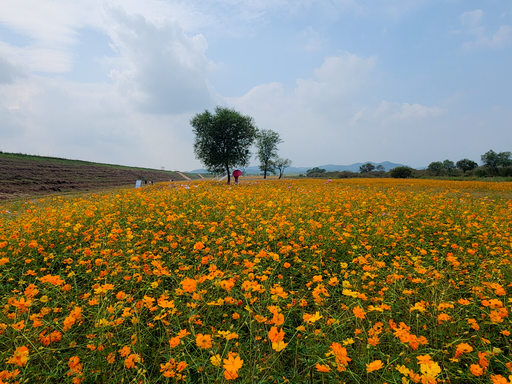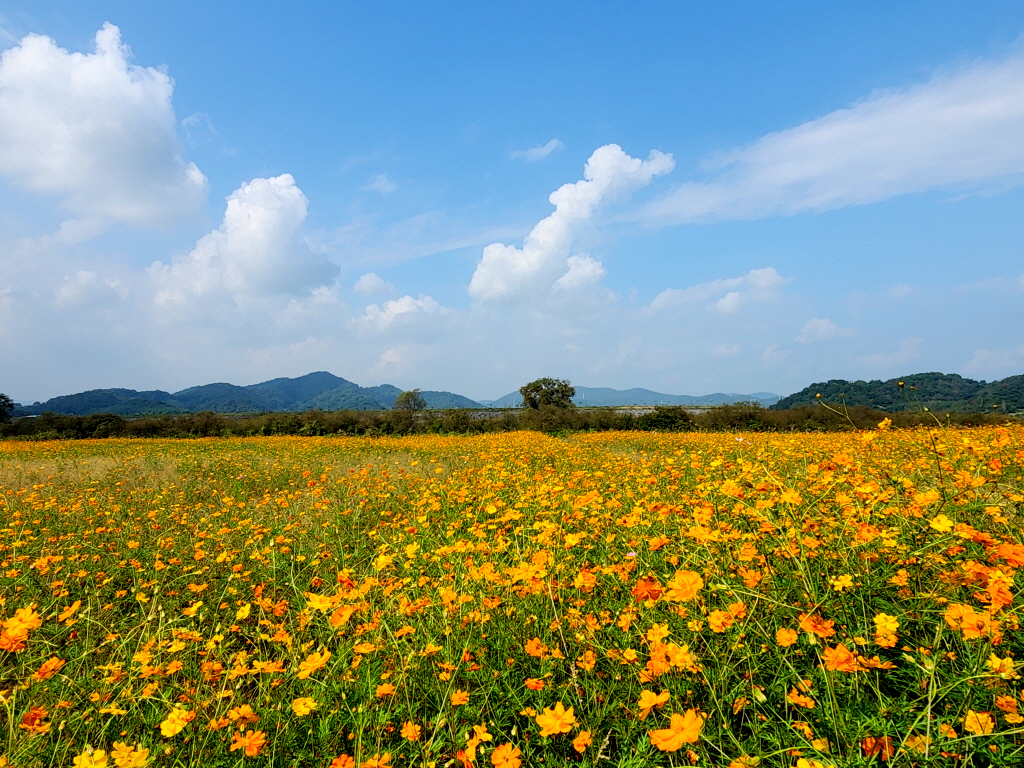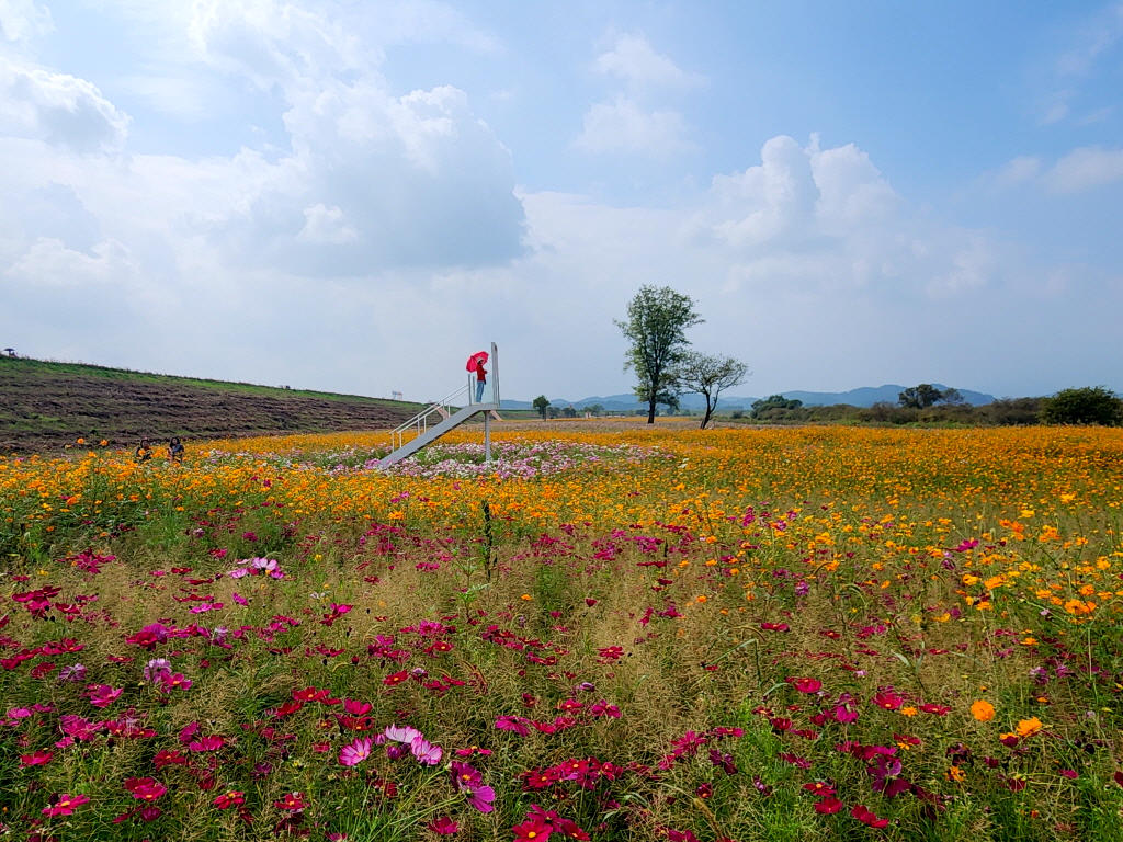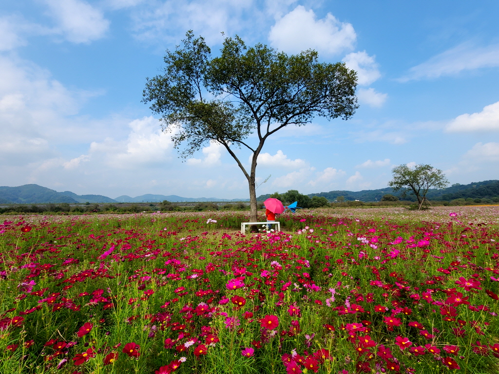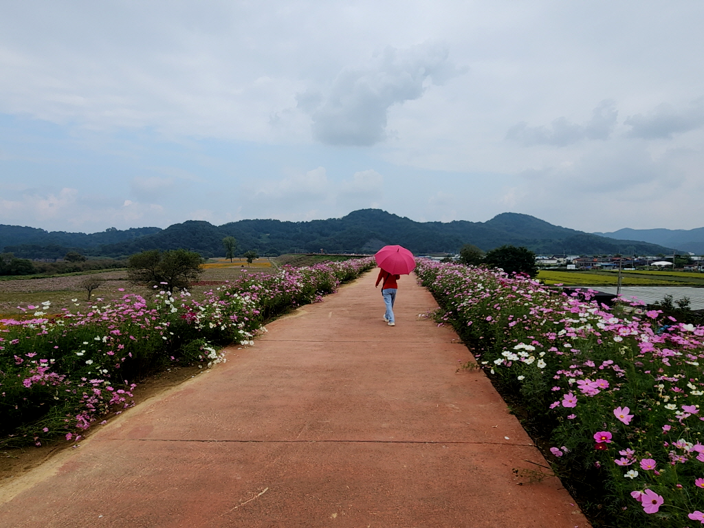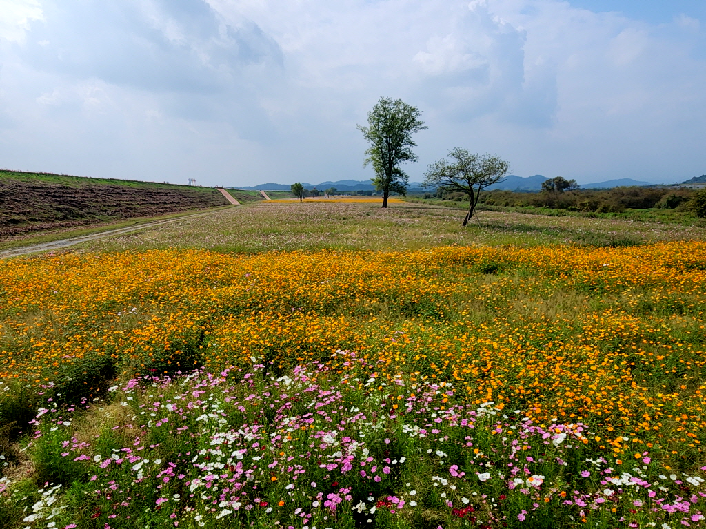 함안 악양둑방은 봄에 대규모 꽃양귀비 꽃밭으로 유명하지만 가을에는 코스모스가 예쁘게 핀다기에 찾아봅니다.