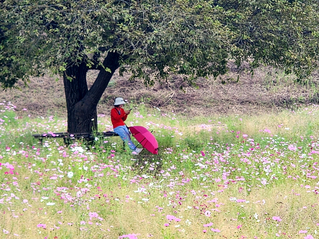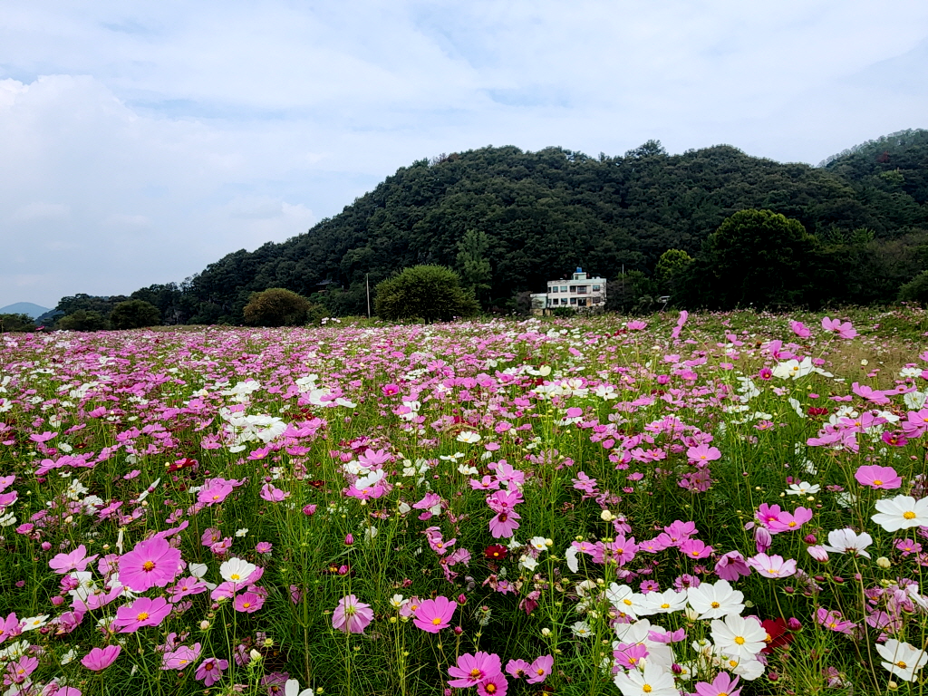 확실히 코스모스가 풍성해 보이지는 않습니다.