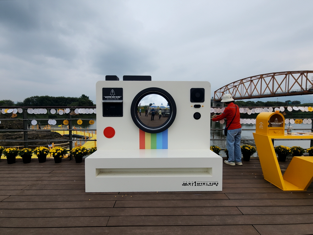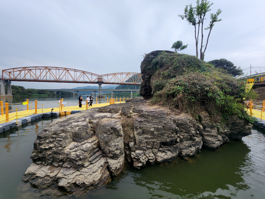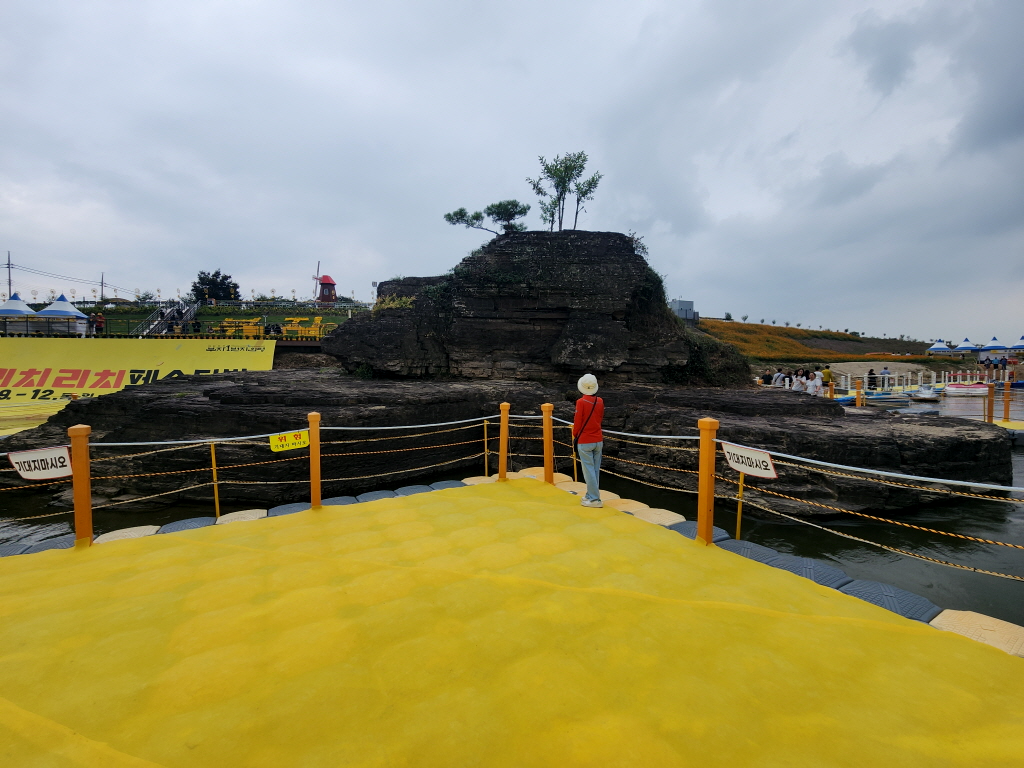 솥바위까지 부교(浮橋)가 설치되어 있습니다.