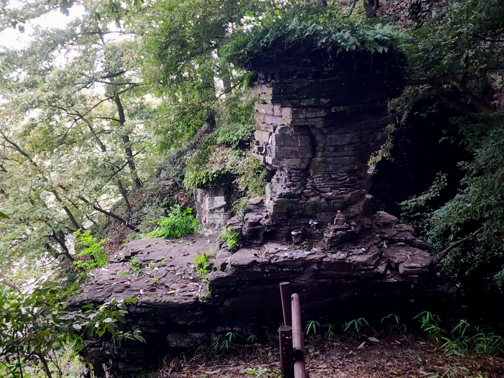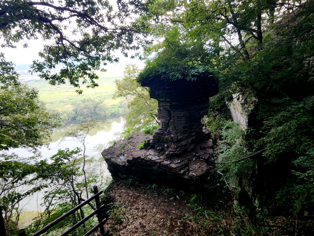 그 위로 높이 8m가량의 작은 바위가 마치 탑층을 이루듯이 천연적으로 층을 이루고 있다.<위키백과에서 발췌>