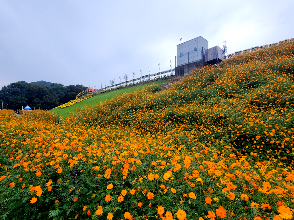 요즘 어딜가나 황화코스모스가 빠지지 않네요