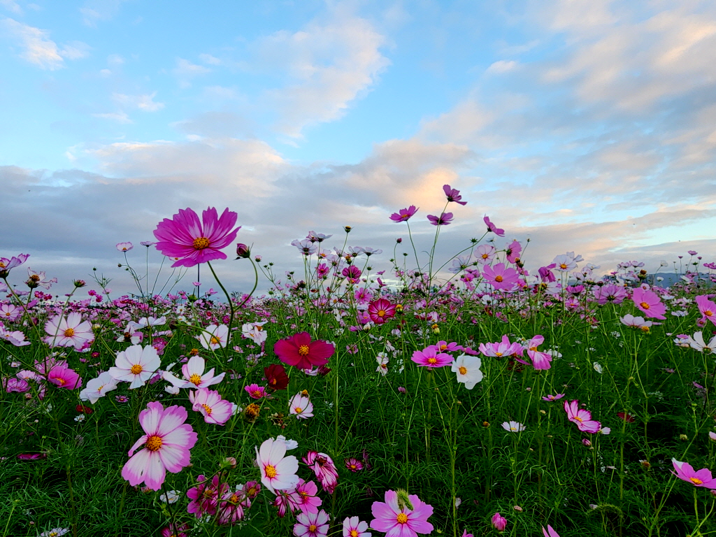 코스모스 한들한들 피어있는 길 ♬ 향기로운 가을 길을 걸어갑니다 ♪ 라는 노래가 저절로 흥얼거려지는