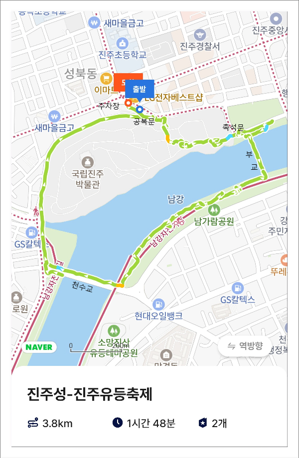 진주성 공북문 앞 주차장에서 진주성 - 촉석문 - 부교 - 천수교 - 주차장 한바퀴가 3.8km네요