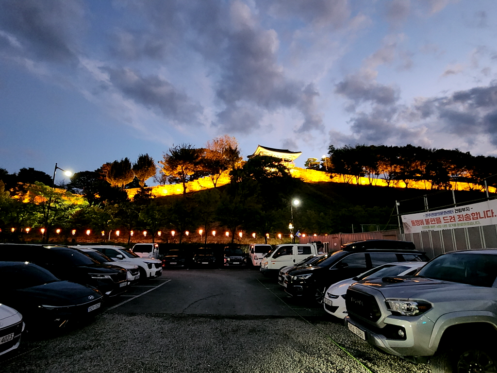 18:13 진주성 공복문 앞 주차장에 주차하고 바라본 진주성