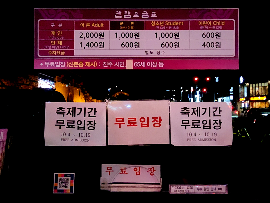 축제 기간동안 진주성 무료 개방이고 주차료도 무료네요