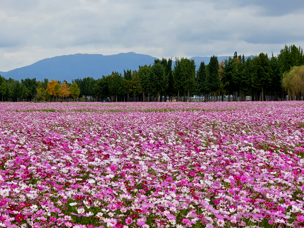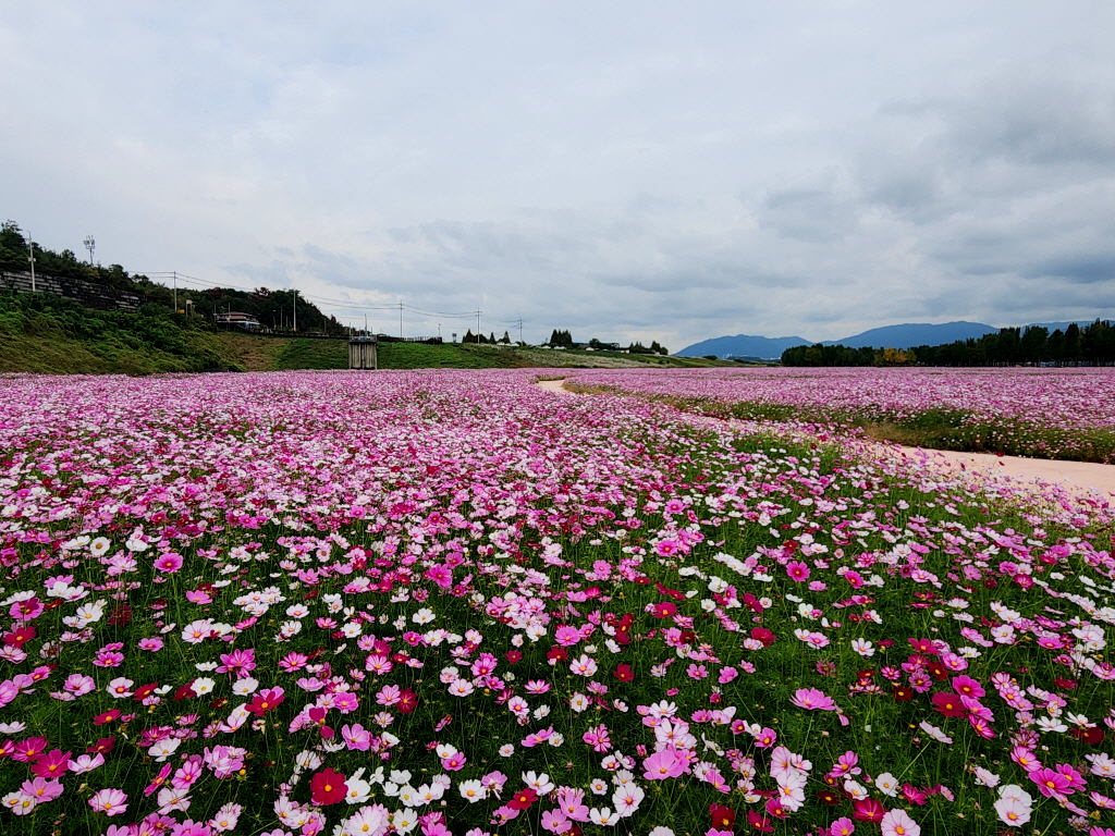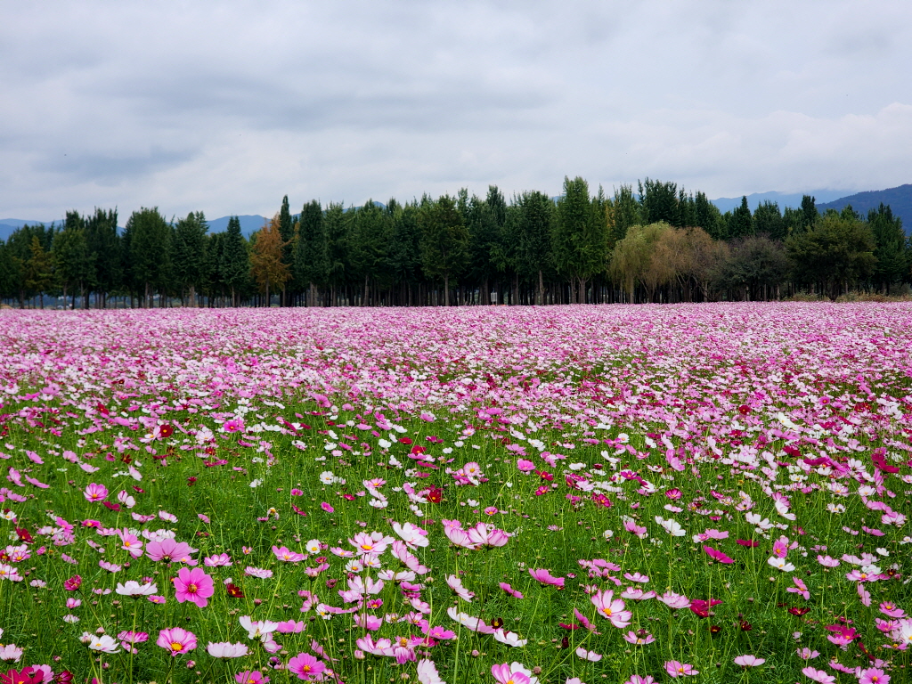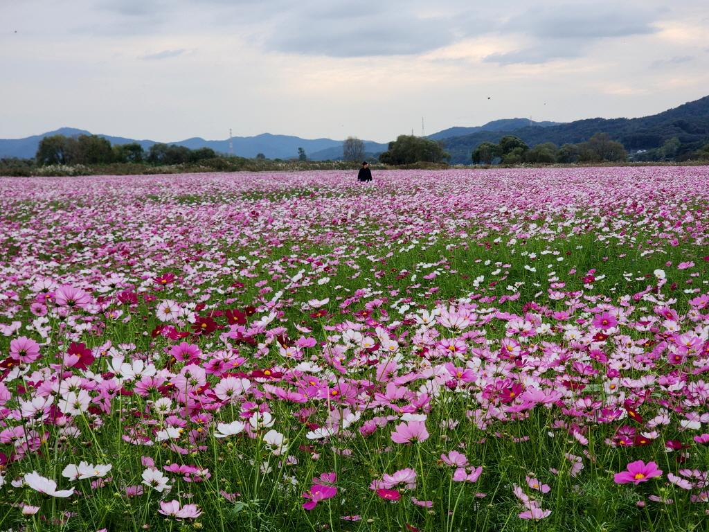 엎어지면 코닿을 곳에 있는 고령 다산 은행나무숲에 엄청난 코스모스 꽃밭이 새로 생긴것을 모르고 있다가