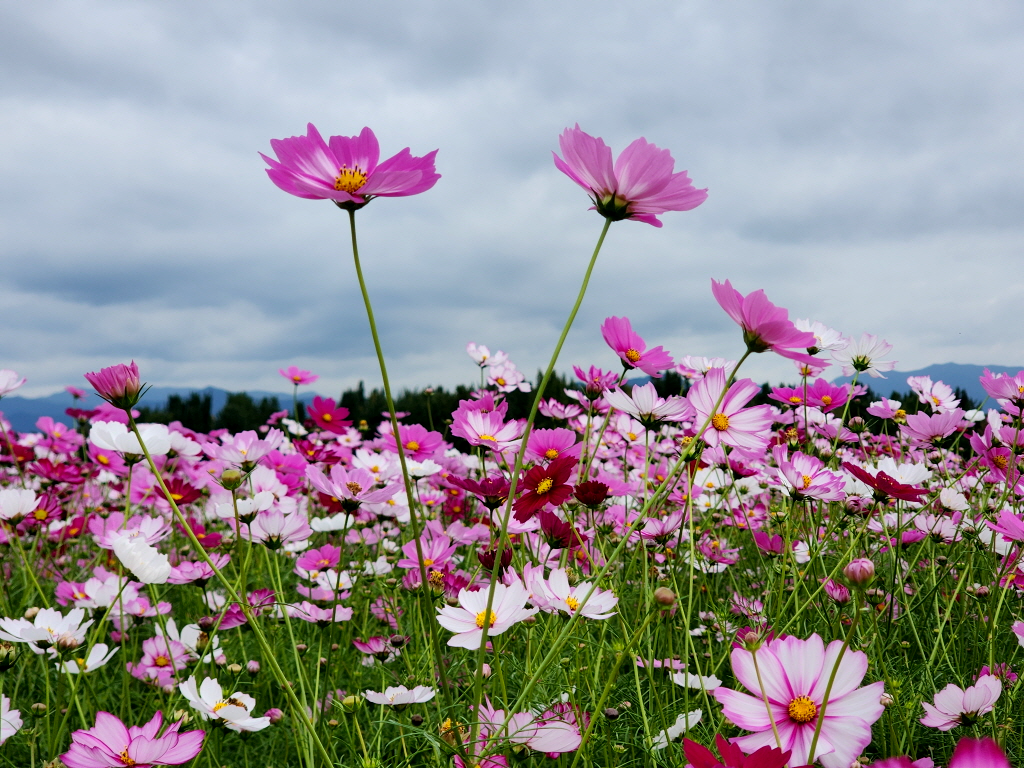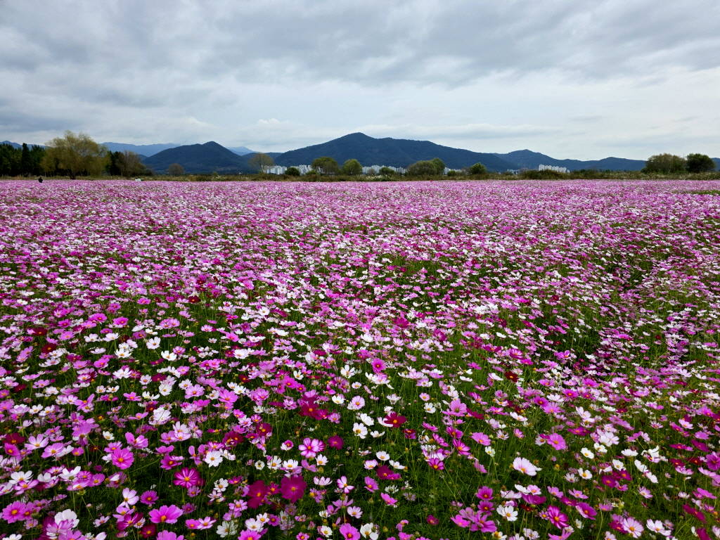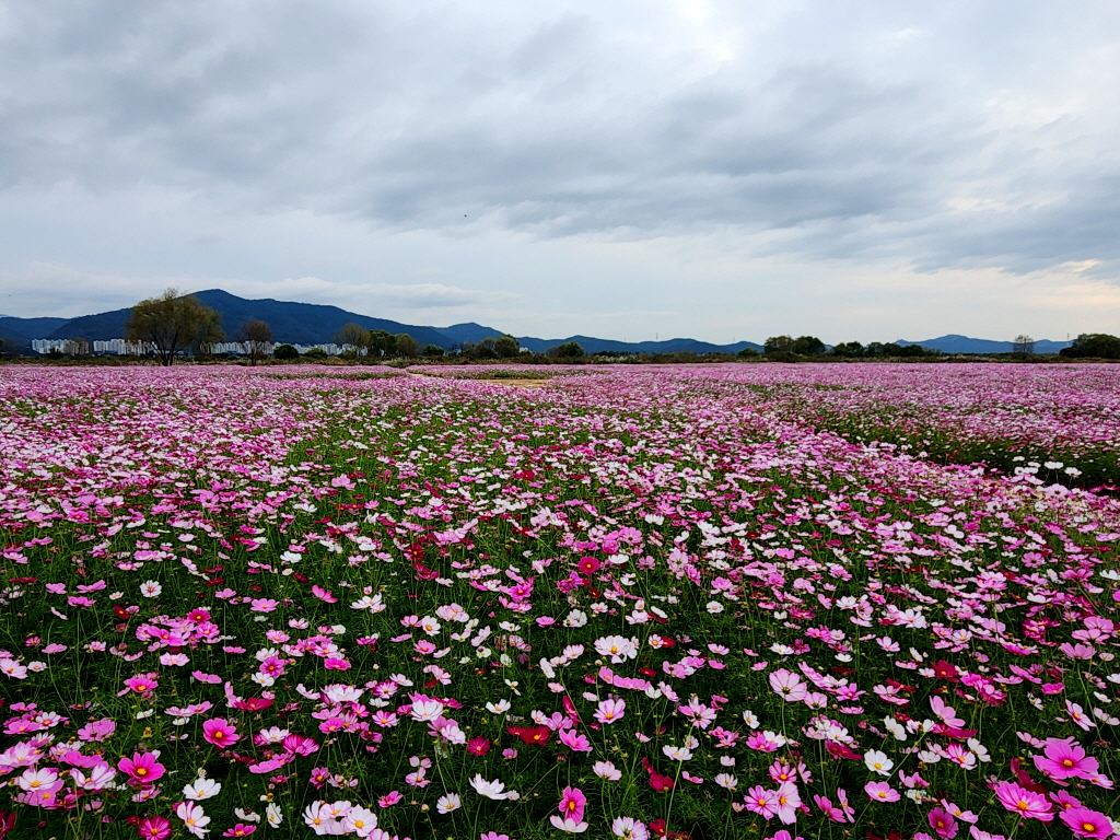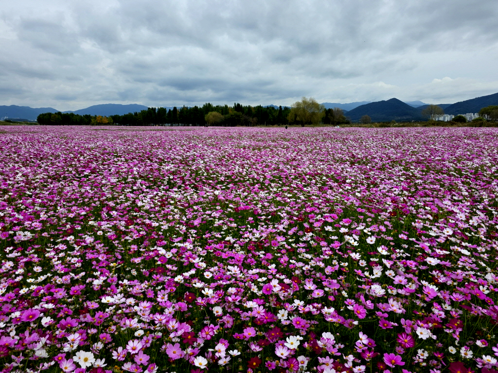 엎어지면 코닿을 곳에 있는 고령 다산 은행나무숲에 엄청난 코스모스 꽃밭이 새로 생긴것을 모르고 있다가