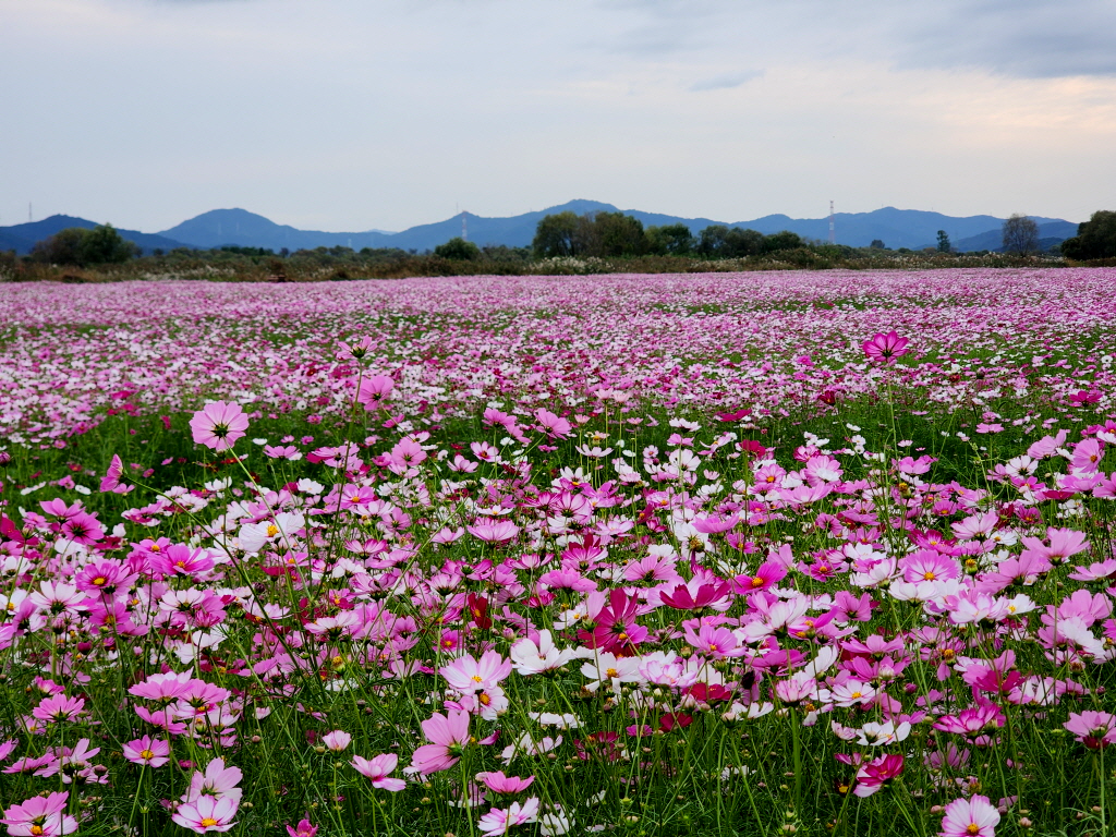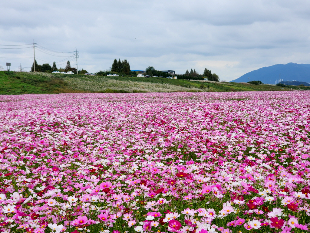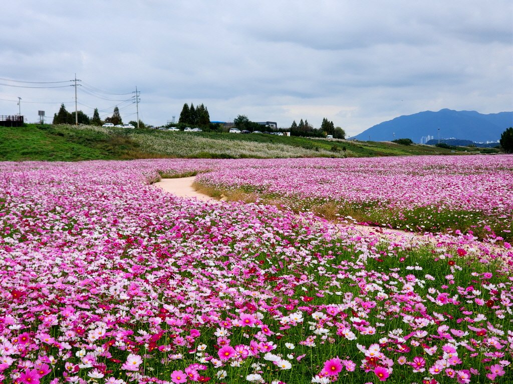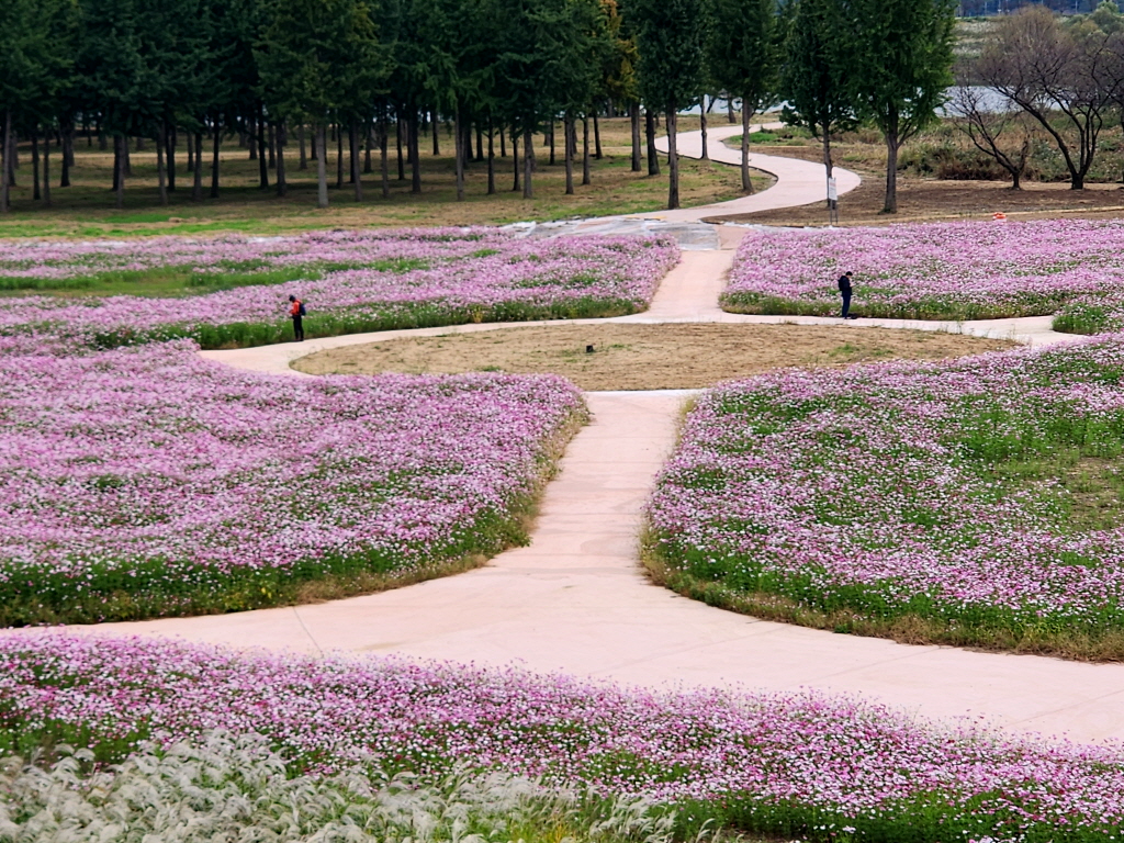이렇게 큰 코스모스 꽃밭이 새로 생긴것을 까맣게 모르고 있었네요