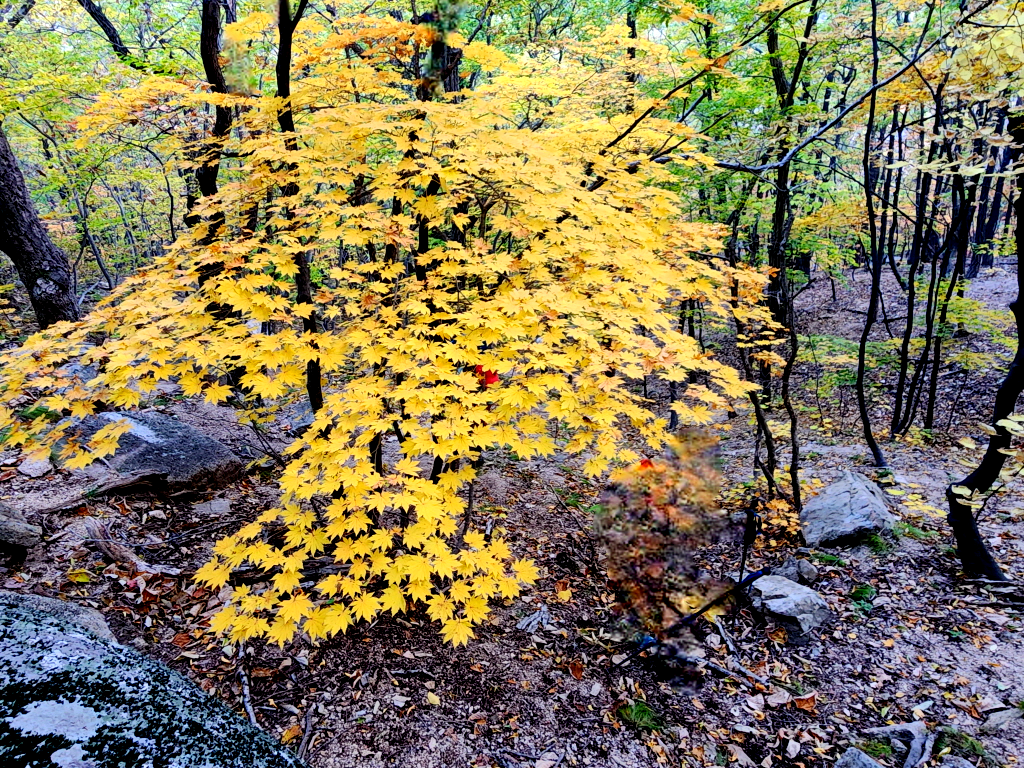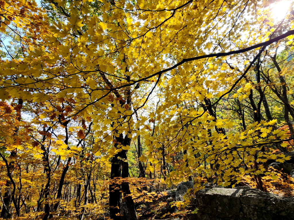 대부분 노란단풍으로 붉은 단풍은 잘 보이지 않는데