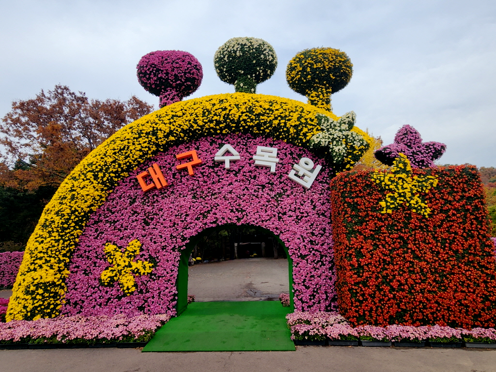 '2025년 대구수목원 국화전시회'가 대구수목원과 동대구역에서 개최되고 있는데,