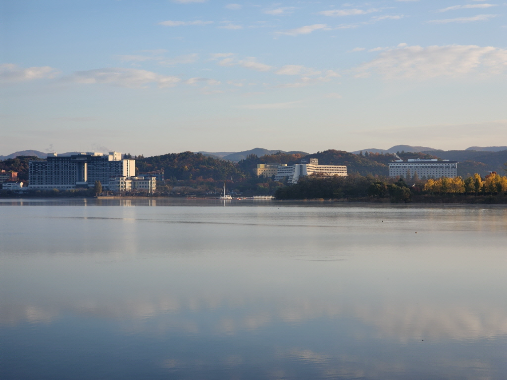 보문호가의 호텔들 전경
