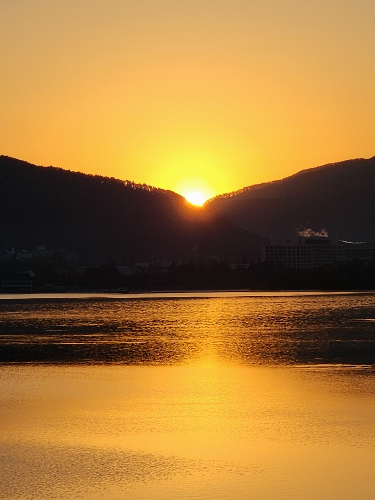 희안하게 딱 엉덩이 중간에서 해가 떠오르네요