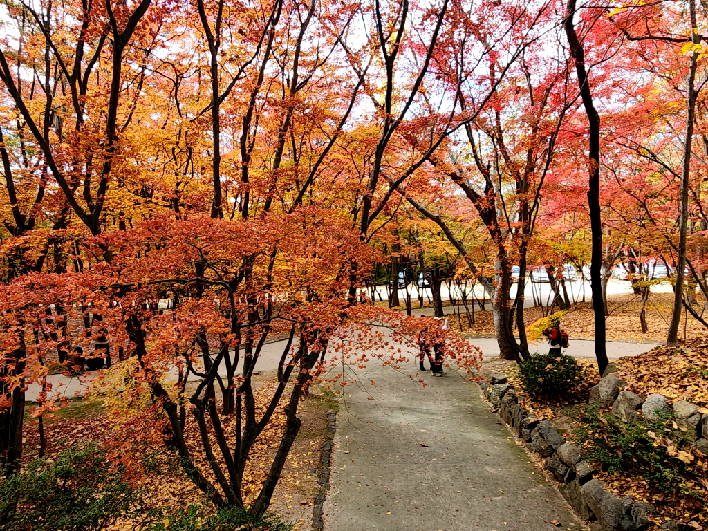 단풍 절정시기에 딱 맞춰서 왔습니다. 날씨도 좋은데 단지 사람이 너무 많다는거