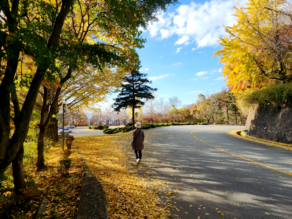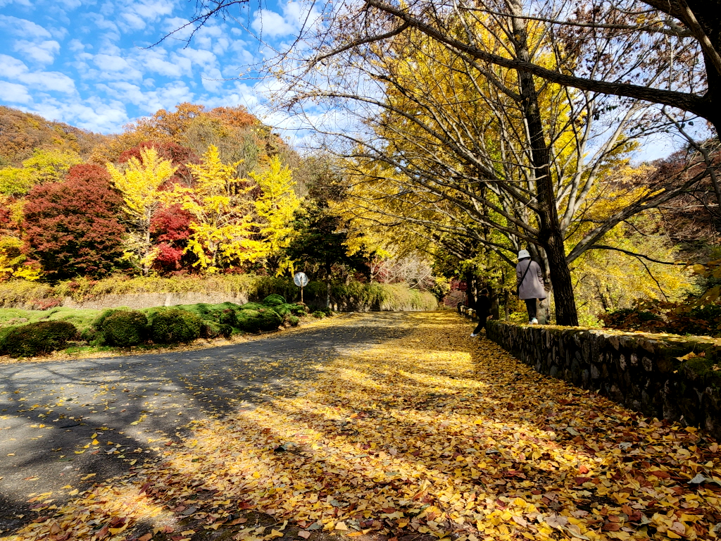 가는길에 토함산 도로에서 우연히 발견한 은행나무 숲과 통일전 은행나무길에도 들렀습니다.
