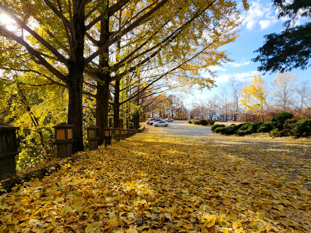 떨어져 소복히 쌓여있는 은행나무잎이 가을이 떠나가고 있음을 말해주네요
