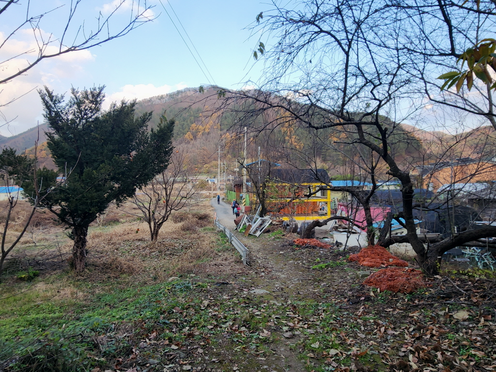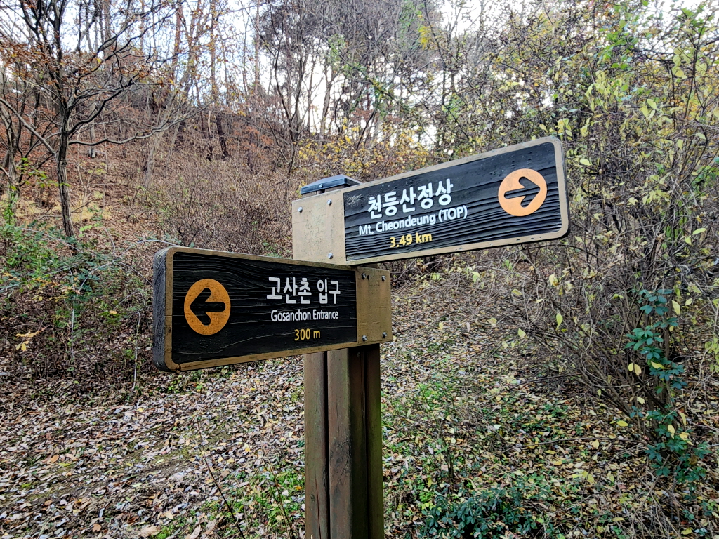 고산촌 입구 방향으로 내려갑니다. 이정목상 거리는 3.75km